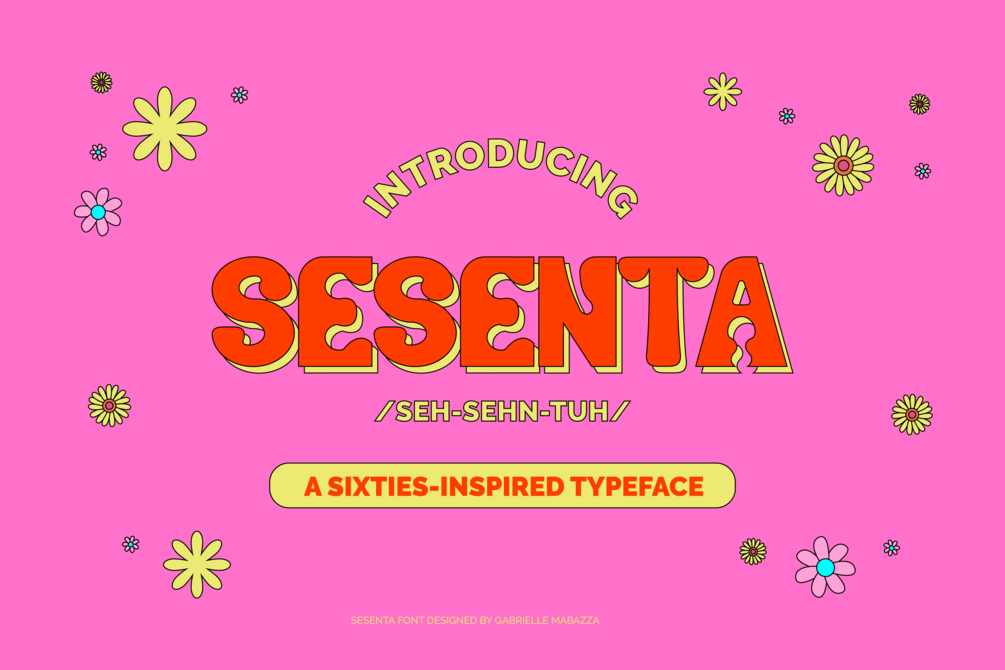 Sesenta (literally means "sixties") is an all uppercase display typeface inspired by hippie culture and the flower power movement of the 60s. Sesenta is fun, stylistic, and high on peace and love.