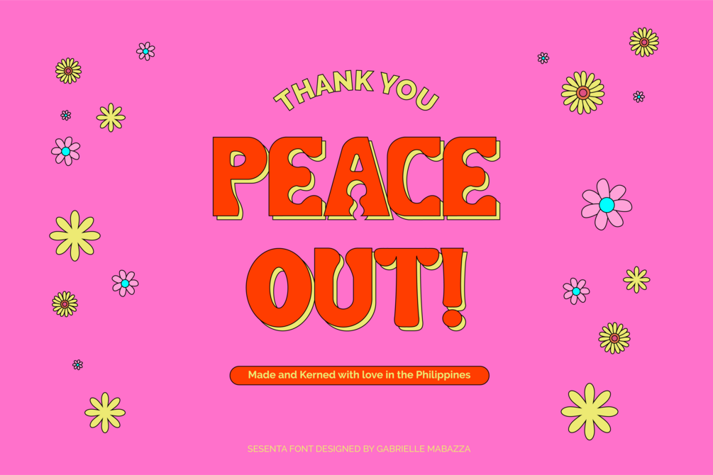 Sesenta (literally means "sixties") is an all uppercase display typeface inspired by hippie culture and the flower power movement of the 60s. Sesenta is fun, stylistic, and high on peace and love.